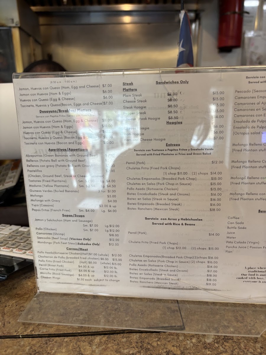 The menu is primarily structured to accommodate casual dining and takeout, with dishes that are hearty and appropriate for lunch or dinner meals. The offerings focus on savory, meat-centered plates paired with traditional sides, reflecting authentic Puerto Rican culinary traditions.